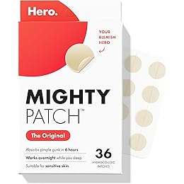 Mighty Patch Original Patch from Hero Cosmetics - #1 Hydrocolloid Acne Pimple Patches for Face, Shrinking Zits & Whiteheads in 1 Use, Nighttime Spot Pimple Stickers for Face, 36 Count