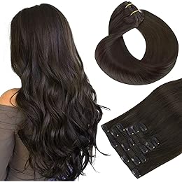 GOO GOO Clip in Hair Extensions Real Human Hair, Remy Human Hair Extensions Clip ins for Women, Natural Human Hair, 20inch 120g 7Pcs, 1B Natural black