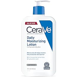 CeraVe Daily Moisturizing Lotion for Dry Skin, Body Lotion & Face Moisturizer with Hyaluronic Acid and Ceramides, Daily Moisturizer, Fragrance Free, Oil-Free, 19 Ounce