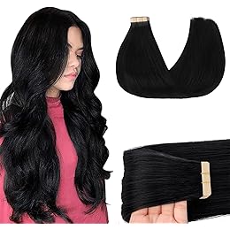 GOO GOO Tape in Hair Extensions Human Hair, 1 Jet black, 20inch 50g 20pcs, Skin Weft Seamless Invisible, Silky Straight with Thick Ends, Remy Human Hair