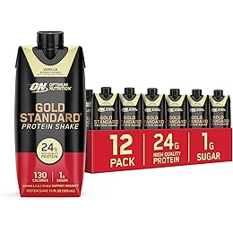 Optimum Nutrition Gold Standard Protein Shake, 24g Protein, Ready to Drink Protein Shake, Gluten Free, Vitamin C for Immune Support, Vanilla, 11 Fl Oz, 12 Count (Pack of 1) (Packaging May Vary)