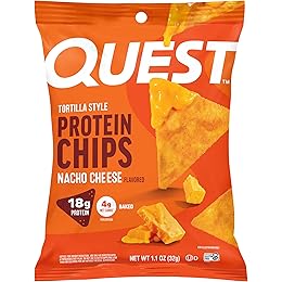 Quest Nutrition Nacho Cheese Tortilla Style Protein Chips, 18g Protein, 4g Net Carb, Low Carb, Gluten Free, 1.1 oz (Pack of 12)